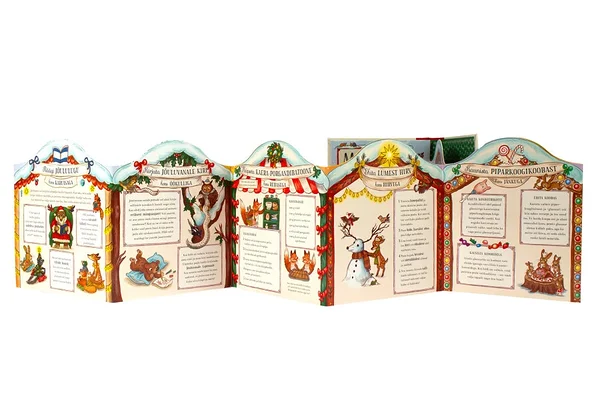 Mõmmisalu jõuluraamat on tõeline advendiaja aardelaegas! Kingipakina kujundatud raamatus on peidus 24 klapiga advendikalender, mis pakub igal detsembripäeval väikese üllatuse – vahva pildikese ja värsirea. Kaasas on ka imeliste piltidega volditav jõulutänav ning hulgaliselt jõulutegevusi: lumekuju meisterdamine, parima jõulupuu leidmine, kingituste pakkimise ideed, maiuste valmistamine ja kiri jõuluvanale.