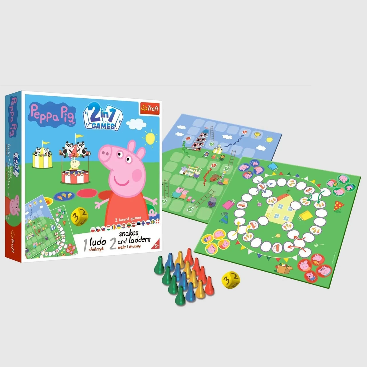 Põrsas Peppa 2-in-1 lauamäng pakub kaks vahvat klassikat ühes karbis: Ludo ja Ussid ja Redelid.
