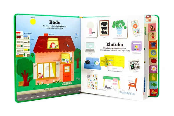 Värvikirevate piltidega lasteraamat, mis aitab lapsel õppida uusi sõnu ja mõisteid ning arendada sõnavara ja mõtlemisoskust. Iga teema juures saab lapsega arutada igapäevaseid tegevusi ja ümbritsevat maailma. Klappide alt avanevad lisadetailid muudavad avastamise põnevaks, ning raamatu küljel olevad värvilised sakid aitavad soovitud teema kiiresti üles leida. Sobib nii ühiseks avastamiseks kui iseseisvaks uurimiseks. Autor: Ühislooming