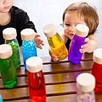 Need pudelid, mis on inspireeritud looduse värvigammast, aitavad lastel avastada värve, imetleda valgust ja leida rahulikke hetki keskendumiseks. Vaadeldes sädelevaid osakesi, litreid ja pompoone, saab laps lõõgastuda ja rahuneda.