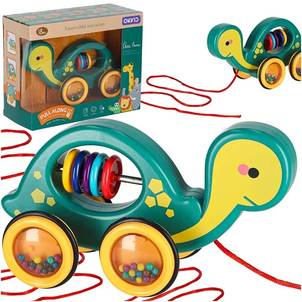 Tõmmatav kõristiga kilpkonn on armas ja rõõmsavärviline mänguasi, mis köidab kohe väikelapse tähelepanu. Sõbralik kilpkonn pakub lisaks armsale välimusele ka palju avastamisrõõmu – kilpkonna kõhus on värviline kõristi viie rattaga ning tema ratastesse peidetud väikesed kuulikesed teevad liikumisel õrna heli, stimuleerides lapse meeli.