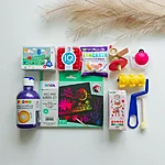 NB! Paki sisu võib olenevalt laoseisust veidi erineda – IQ mini mängu värvus, käima tõmmatav vurr, suur tempel, kollase rulli muster, guaššvärv.