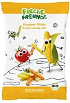 Freche Freunde porgandipulgad 30 g. Sobivad lastele alates 12+ kuust. Vegan. Koostisosad: maisimanna* (72,7%), päevalilleõli*, porgandipulber* (13,1%), vitamiin B1 (*kontrollitud mahepõllumajandusest). Toode sisaldab ainult looduslikult esinevaid suhkruid. Võib sisaldada soja-, gluteeni- ja piimajääke.