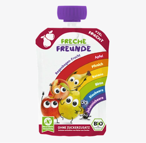 3) Freche Freunde Rainbow püree õuna, virsiku, banaani, pirni, mustika ja mustsõstraga 100g