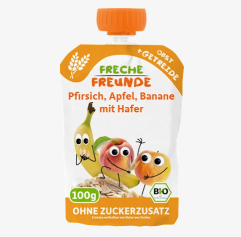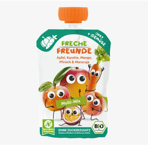 2) Freche Freunde püree õuna, porgandi, mango, virsiku ja passioniga 100 g