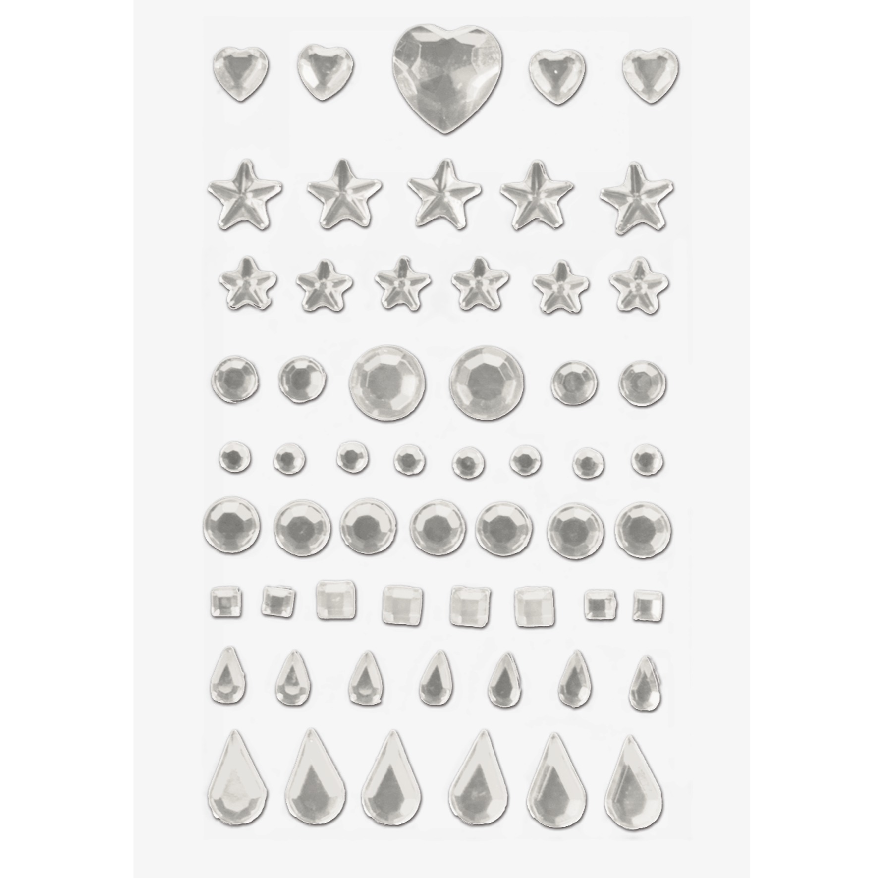 Dekoratiivkleepsud erinevate kujukeste ja suurustega. Lehel (75 × 148 mm) on kokku 58 isekleepuvat elementi, sealhulgas erinevad armsad ja dekoratiivsed kujundid nagu täpid, südamekesed, tähekesed, ruudukesed ja veetilgad.