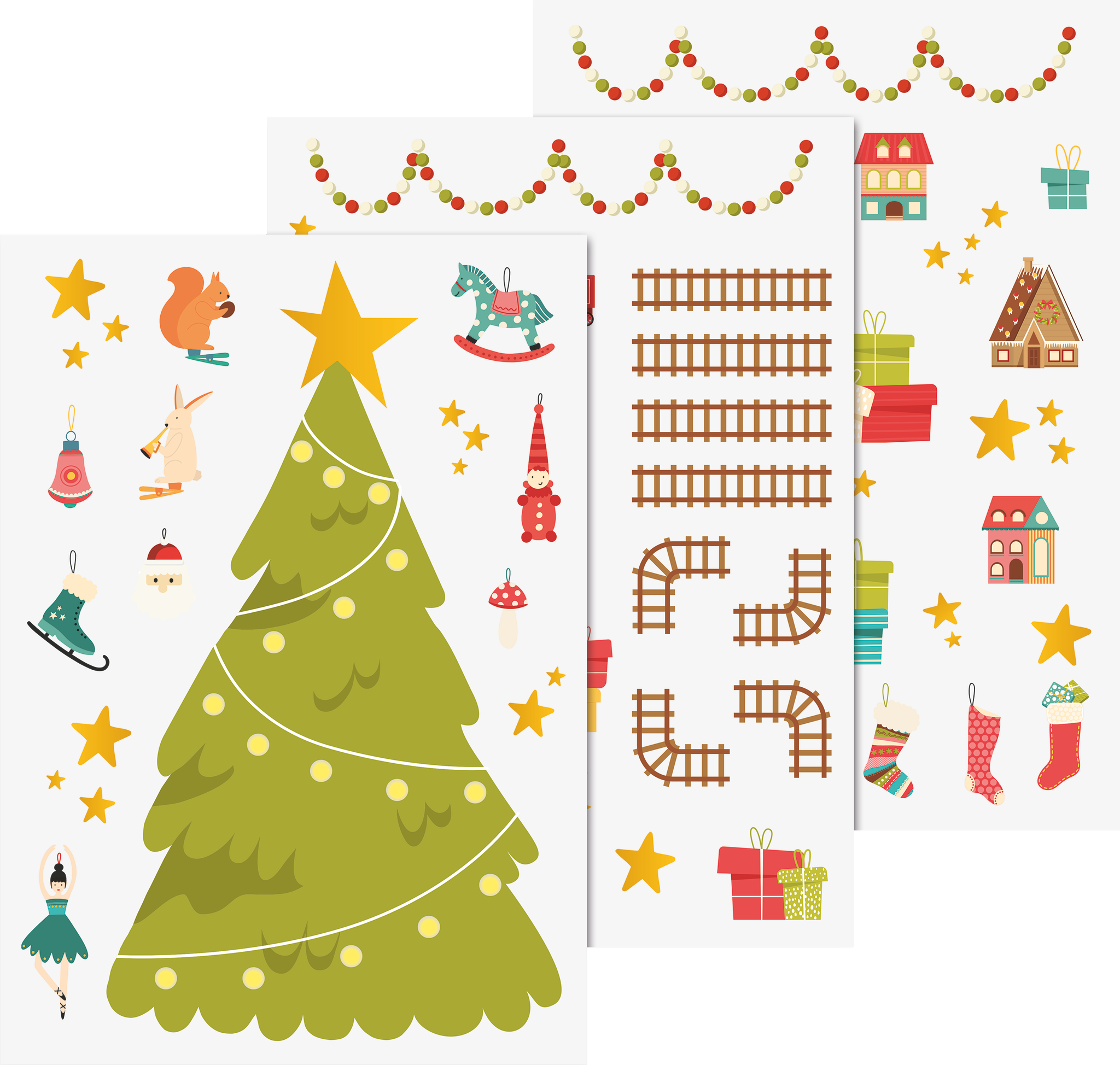 Aknakaunistuskleebiste komplekt, mis sisaldab 3 lehte suuruses 21 x 29,7 cm. Kleebised on värvikirevad ja sobivad ideaalselt akende, peeglite või muude siledate pindade kaunistamiseks.