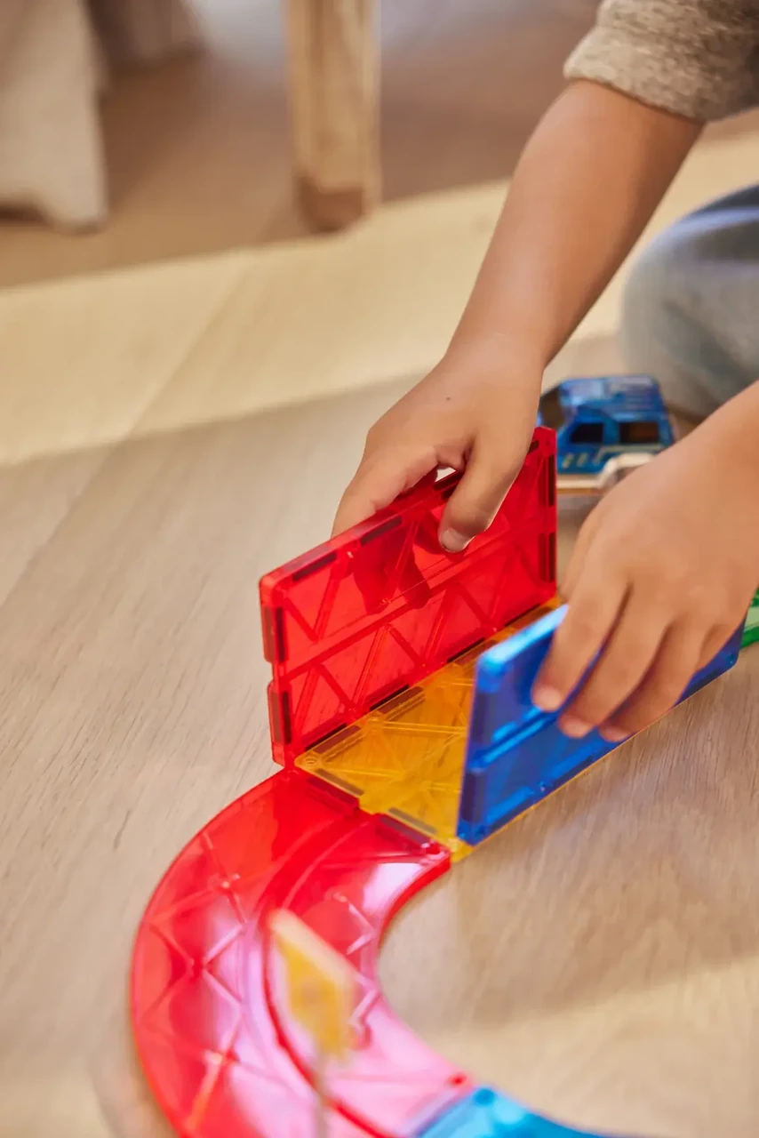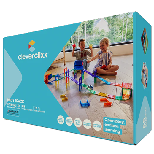 Lõputu võidusõidurõõm Cleverclixx Race Track komplektiga! Selle 65-osalise magnetilise rajakomplektiga saab laps ehitada mitmetasandilisi autoradu ja luua põnevaid võidusõiduseiklusi.