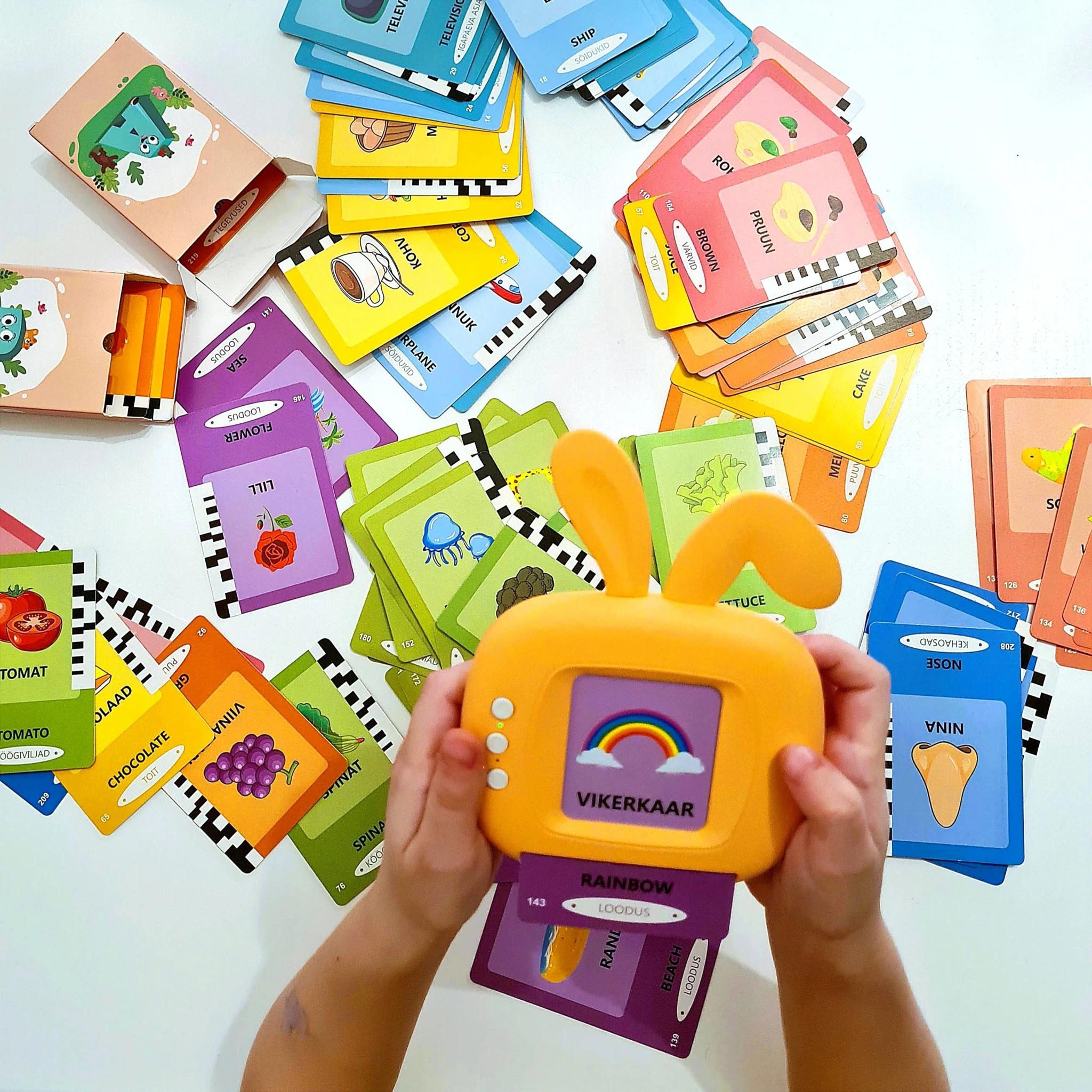 Kaartide pildid on värvilised ja lastele meeldivad, sõnad on jaotatud erinevatesse kategooriatesse: sõidukid, igapäevaasjad, toit, köögiviljad, puuviljad, perekond, värvid, kujundid, ametid, riideesemed, loodus, loomad, kehaosad ja tegevused.