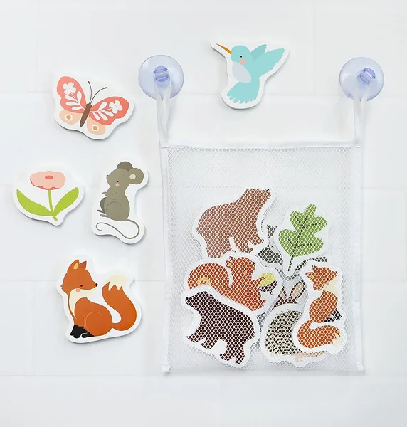 Naudi lõputut vanniaega nende metsloomade vahtmänguasjadega. 14 kujundut kinnituvad dušiseinale, vannile või plaatidele niiskena ja saab pärast kasutamist mugavalt hoiustada kaasasolevas võrkkotis.