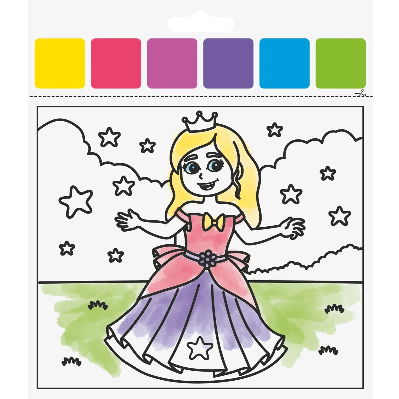 Värvimiskomplekt sisaldab veepõhiseid värve ja praktilist veepaagiga pintslit, millega saab vett lihtsalt ja ohutult transportida. Täiuslik loovtegevuseks kodus ja liikvel olles.