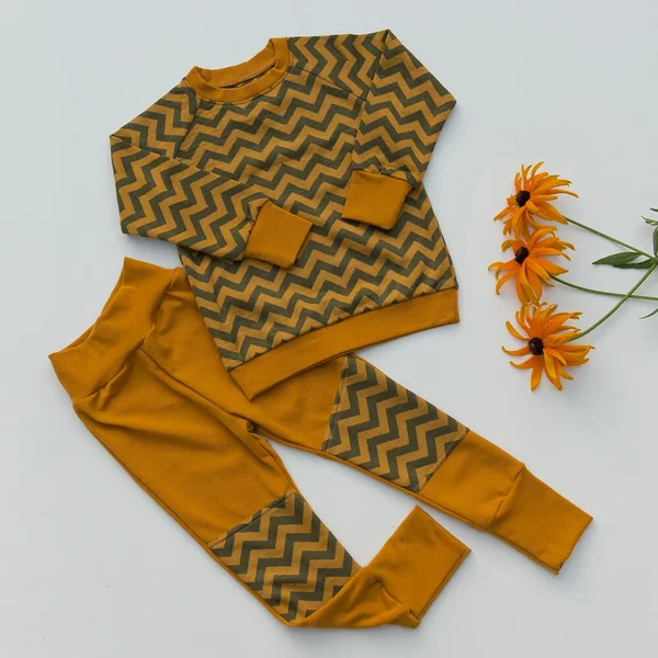 Topeltsuuruses kampsun on natuke kehaosast pikem ning soonikud pikemad. Käte juures olevaid soonikuid saab maha keerata, kui laps on väiksem ning täispikkuses kasutada, kui laps on suurem.