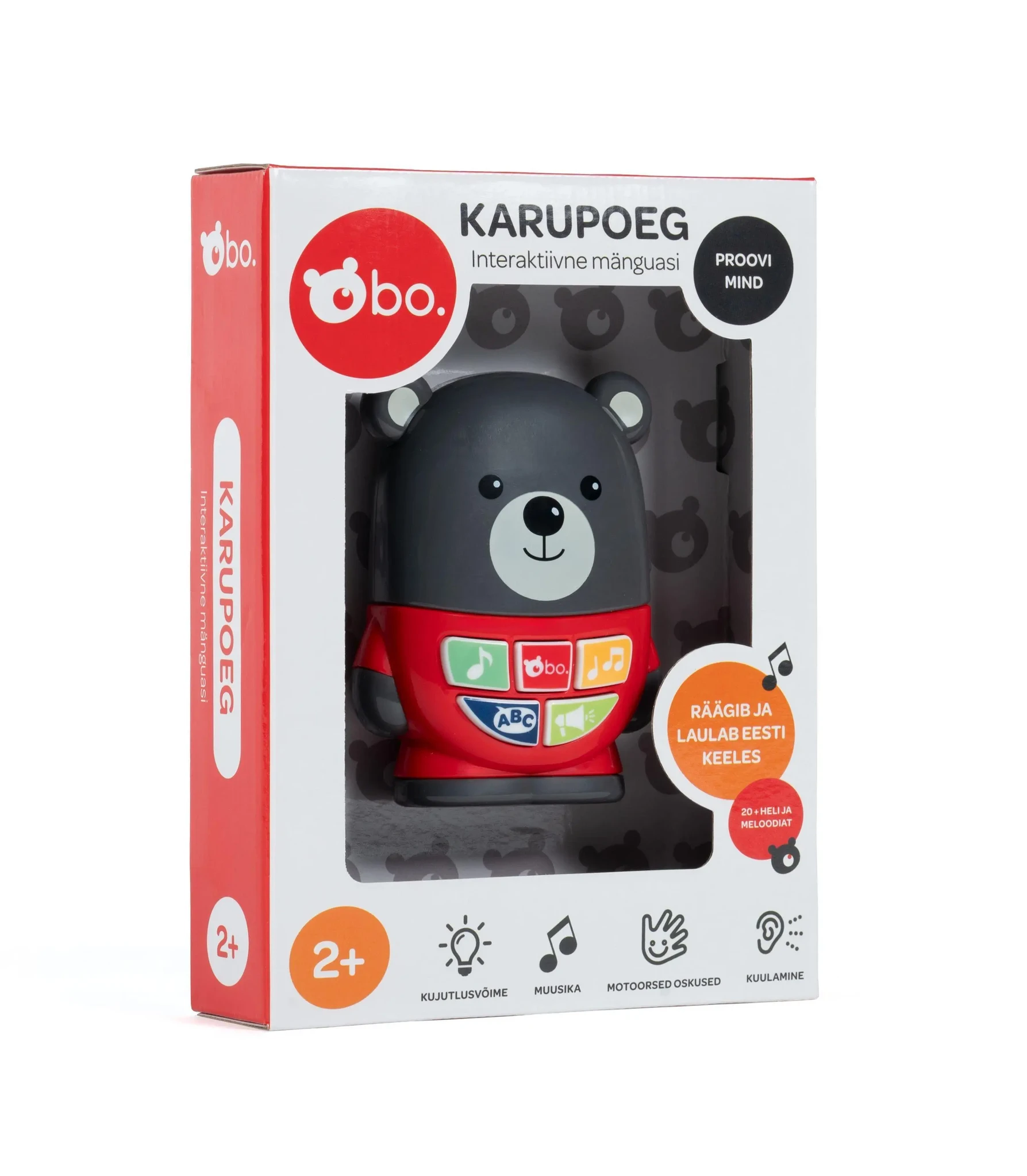 Saage tuttavaks bo. Karupojaga – trendika muusikalise mänguasjaga, mis räägib ja laulab eesti keeles! See armas beebikaru saab kiiresti lapse lemmikuks, pakkudes nii õppimist kui puhast mängurõõmu.