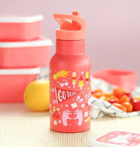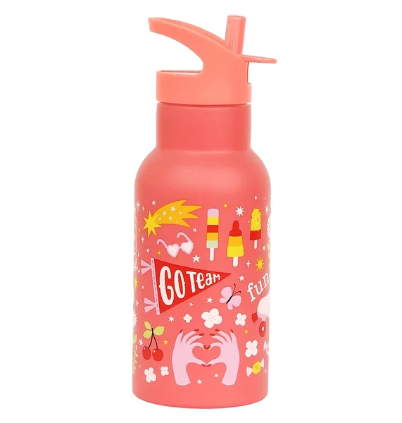 Roostevabast terasest joogipudel on ideaalne kooli või lasteaeda kaasa võtmiseks. Laste joogipudel on kahekordse seinaga, mis hoiab joogid jahedana. 350 ml pudelil on kaasas keeratav kork, joogitoru ja kõrs külmade jookide jaoks. Soojade jookide jaoks on eraldi müügil roostevabast terasest kruvikork.