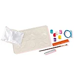 Komplektis:Kipsisegu, vorm, värvid, pintsel, silumisvahend, säeapuru ja sinine satiinpael.