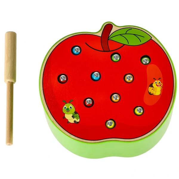 Magnetiline puidust õunaröövikute mäng on Montessori-stiilis arendav mänguasi, mis toetab lapse keskendumisvõimet ja peenmotoorika arengut. Õunakujulise aluse sees peituvad värvilised puidust röövikud, mida laps saab magnetotsaga pulga abil „püüda“. Edasijõudnum versioonina saab röövikud ka tagasi asetada. Mäng arendab käe-silma koordinatsiooni, kannatlikkust ja osavust ning julgustab iseseisvat tegutsemist.