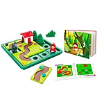 Komplektis on Punamütsike, hunt, vanaema maja, 3 puud, 5 teerada ning kõvade kaantega pildiraamat, mille abil saab laps jutustada klassikalise muinasjutu oma sõnadega.