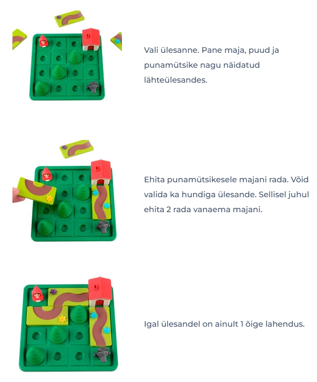 Igal ülesandel on vaid üks õige lahendus, mis on toodud ülesande tagaküljel. Kui mõistatus tundub liiga keeruline, võib kasutada lahendust vihjena või lihtsalt mängida tegelastega ning nautida loo jutustamist!