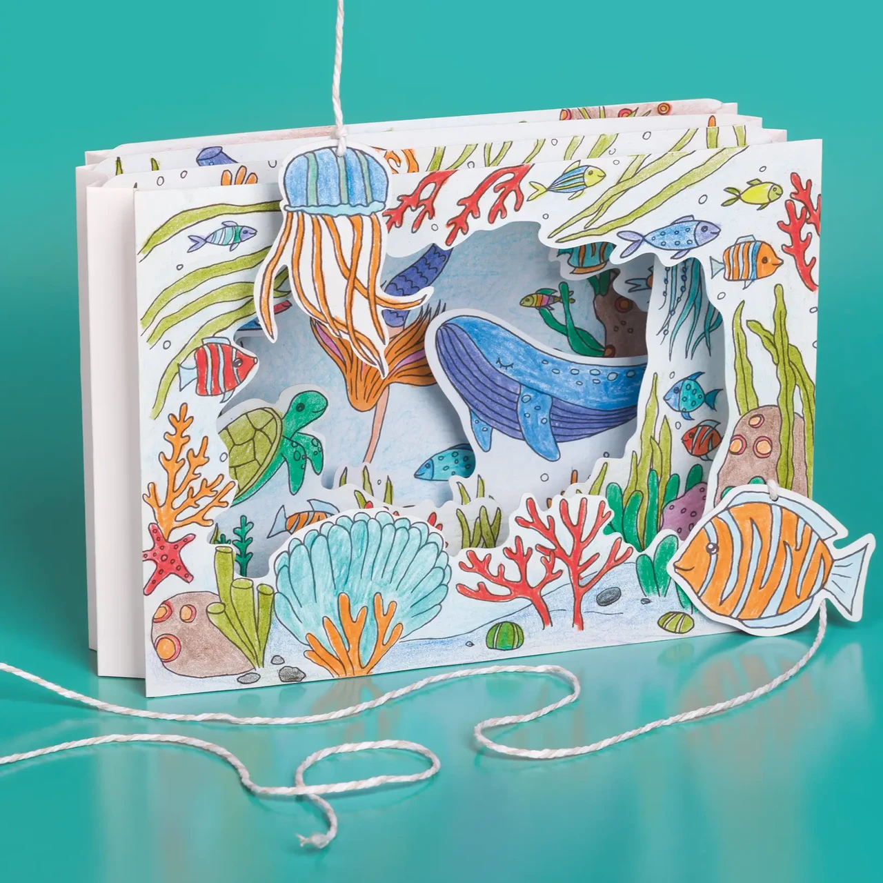 Pappteatri meisterdamiskomplekt pakub lapsele võimalust luua omaenda veealune maailm! Komplektis on eelnevalt väljalõigatud papist detailid, mida saab ise värvida, kokku panna ning seejärel nendega mängida.