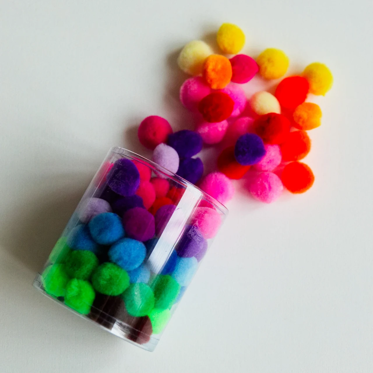 Need pehmed ja kohevad pom-pom pallid on ideaalne valik käsitööprojektideks ja loovateks tegevusteks. Komplekt sisaldab 100 pom-pommi, mis on komplekteeritud konteinerisse erinevates toonides, pakkudes lastele ja täiskasvanutele lõputult võimalusi värvikate projektide loomiseks. Pom-pommide läbimõõt on 2 cm, mis teeb neist ideaalse vahendi nii väikesteks kui suuremateks käsitööprojektideks.