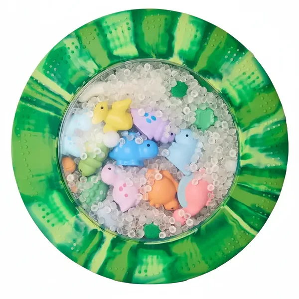 Lihtsa pigistuse abil muutub mäng põnevaks “otsi ja leia” seikluseks, kus laps avastab peidetud kujukesi. Samal ajal stimuleerib mäng nägemis-, kompimis- ja kuulmismeelt ning aitab lapsel rahuneda ja keskenduda.
