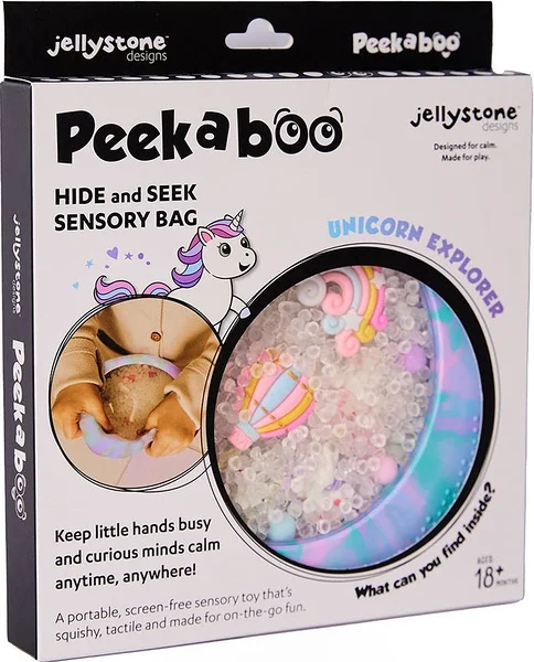 Peekaboo Sensory Bag julgustab last mudima, venitama ja pigistama, arendades nii peenmotoorikat, käe ja silma koordinatsiooni ja uudishimu läbi mängu.