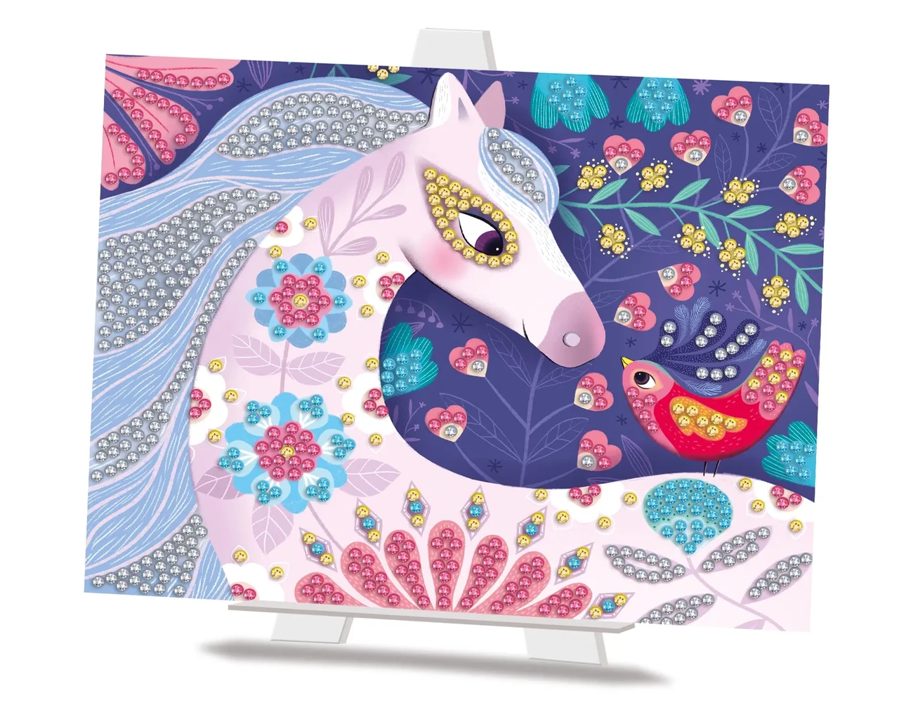 Loov meisterdamiskomplekt, kus lapsed kaunistavad kaarte väikeste värviliste kivikestega, luues sädeleva teemanttikandi efekti. Komplekt arendab käelist osavust ja keskendumist ning valminud pilte saab esitleda kaasasoleval alusel.
