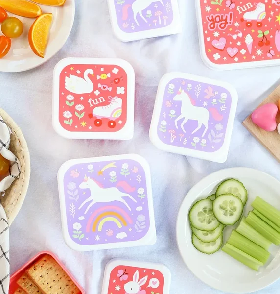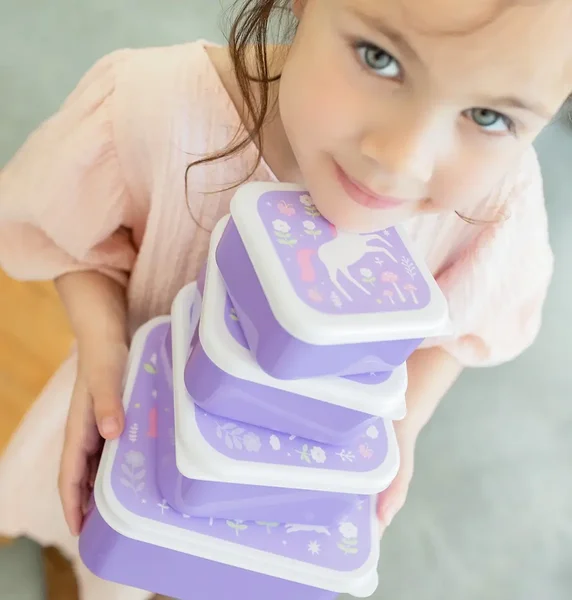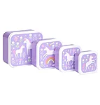 Neljaosaline lõuna- ja snäkikarpide komplekt eri suurustes on praktiline valik kooli, lasteaeda, matkale või koduseks kasutamiseks. Karbid sobivad ideaalselt võileibade, puuviljade ja suupistete kaasavõtmiseks ning hoiustamiseks.