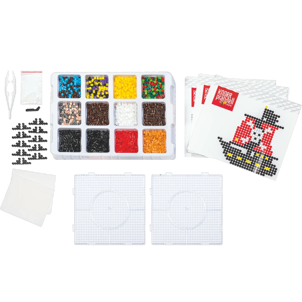 Triigitavate pärlite suur piraaditeemaline komplekt – 4048 osa – pakub põnevat ja loovat meisterdamist väikestele seiklejatele! Komplektis on 4000 värvilist sulatushelmest ning kaks ruudukujulist alusplaati, mille abil saab luua nii 2D kui ka 3D kujundeid.