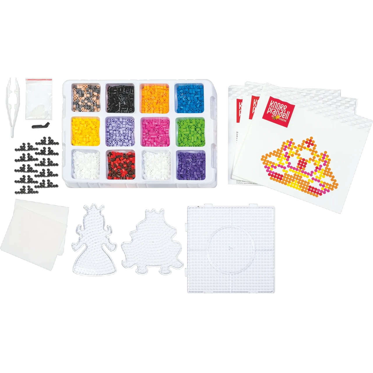 Triigitavate pärlite suur komplekt, 4049 osa, pakub tundideks loovat meisterdamisrõõmu! Komplektis on 4000 värvilist sulatushelmest ning erinevad alusplaadid (ruut, printsess ja konn), mille abil saab luua muinasjutulisi 2D ja 3D kujundeid.