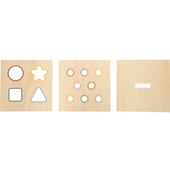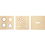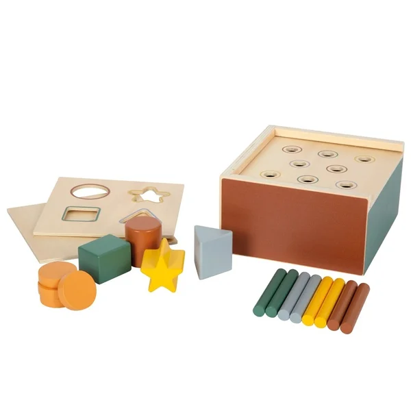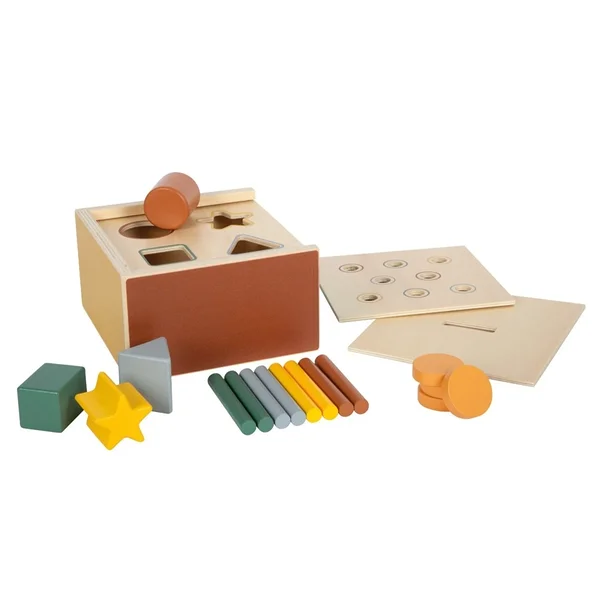 Avasta, sobita ja mõista! See Montessori põhimõtetest inspireeritud kujundite sorteerimismäng pakub väikelapsele võimalust õppida läbi iseseisva tegutsemise. Tugev FSC® 100% sertifitseeritud puidust karp sisaldab kolme vahetatavat plaati, mis esitavad erinevaid väljakutseid koordinatsioonile ja loogilisele mõtlemisele.