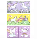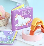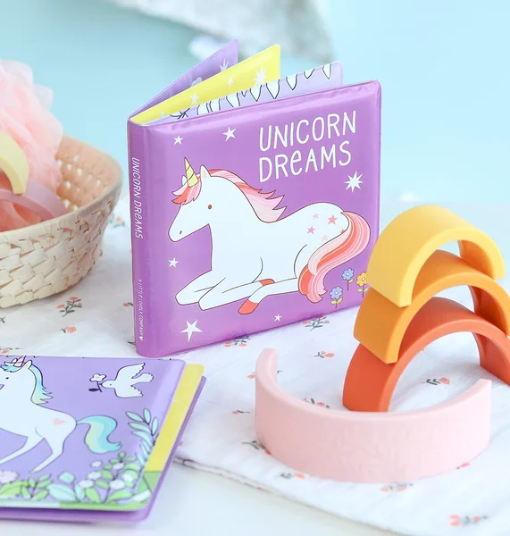 Maagiline 6-leheküljeline vanniraamat, mida saab kasutada vanniskäigus. Pehmed vooderdatud lehed on veekindlad ja täis armsaid ükssarvikuid.