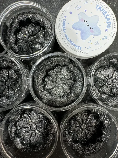 Koostisosad: nisujahu, meresool, vesi, viinakivi pulber, taimeõli, naturaalne toiduvärv, biolagunev sädelus