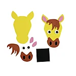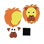 Suur šabloon koosneb kahest osast. Aseta šabloon paberile ja vajadusel kinnita see teibiga, et see paigast ei liiguks. Seejärel saab lapsega koos šablooni sisse värvi tupsutada švammi või pintsliga. Ka eemaldatud sisetükki võib kasutada eraldi šabloonina – kui seda äärtest tupsutada, tekib vahva kujund.