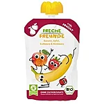 Freche Freunde. Üks tuub vastab ühele portsjonile viiest päevasest soovituslikust puu- ja köögiviljadest. Õunapüree* 52%, virsikupüree* 30%, maasikapüree* 18%. Tärniga tähistatult on pärit mahepõllumajandusest. Sobilik alates 12. elukuust.