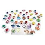 NB! Pakkide sisu võib erineda pildil näidatust – värvid, maitsed ja kujundid on valitud juhuslikult. See tähendab, et magnetmänguasja, maraka, näpuvärvide, õppekaartide ja šabloonide toonid võivad olla erinevad. Samuti on mahlapulkade maitsed, puslede ja vannimänguasjade kujutised igas pakis erinevad ning ei pruugi kattuda näidispaki fotoga.