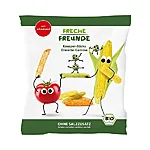 Freche Freunde juurviljapulgad 30 g. Sobivad lastele alates 12+ kuust. Vegan ja gluteenivaba. Koostisosad: maisimanna* 61%, hernejahu 18%*, riisijahu*, päevalilleõli*, tomatipulber 4%*, maisipulber 2%* (*kontrollitud mahepõllumajandusest). Toode sisaldab ainult looduslikult esinevaid suhkruid. Võib sisaldada sojajääke.