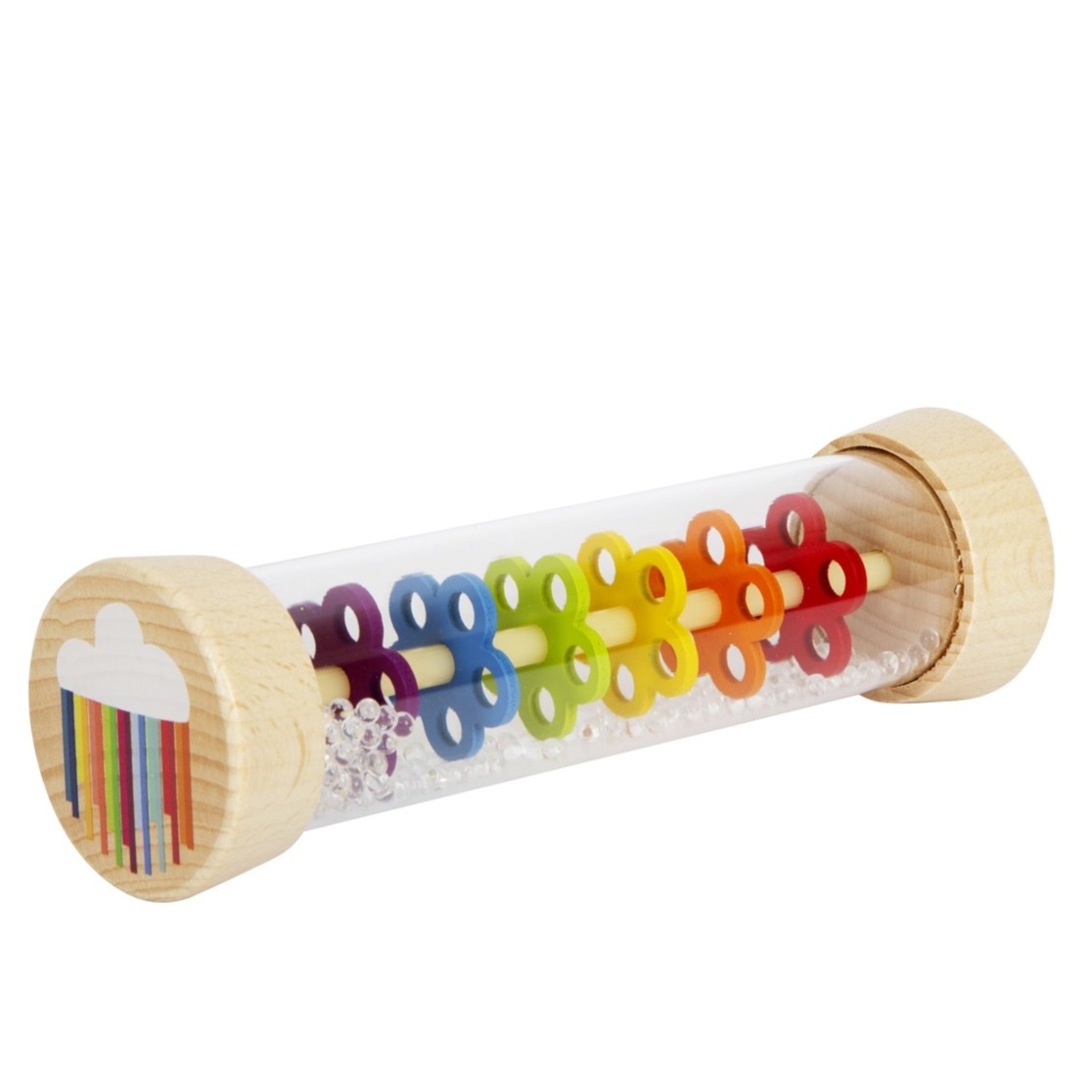 Nii kõlabki vihm. Selle vihmapilli abil saab imiteerida õrna vihma heli. Seda saab kasutada mitmel viisil: loksutajana, rütmi- ja heli mänguasjana või rahustava helina meelte jaoks. Vihmapilli läbipaistev toru võimaldab hästi näha väikseid klaaskuule, mis voolavad läbi lillekujuliste aukudega plaatide.