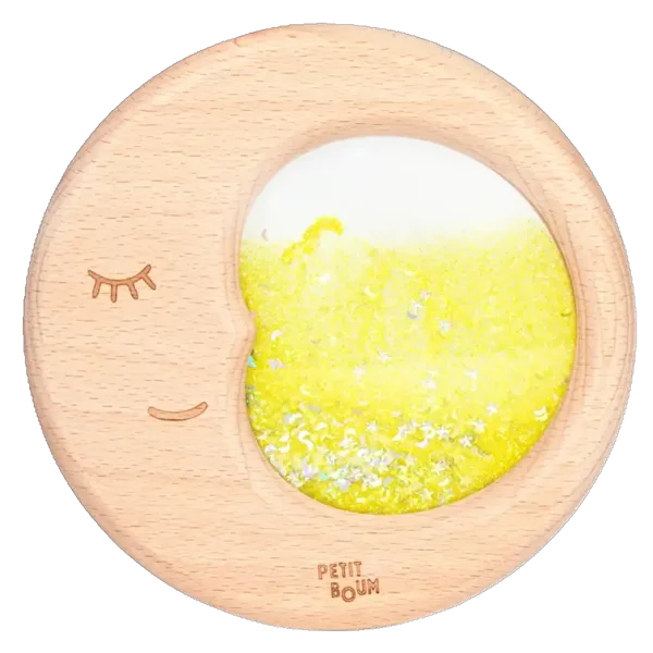 Sensoorne kuu kutsub unistama ja kaisutama end selle õrna helenduse ja sädeluse keskele. Naturaalsest pöögipuust valmistatud mänguasi sisaldab liikuvaid pigmente, mis köidavad väikeste laste pilku, toetades silmade jälgimisoskuse arengut ning soodustades rahunemist ja keskendumist.