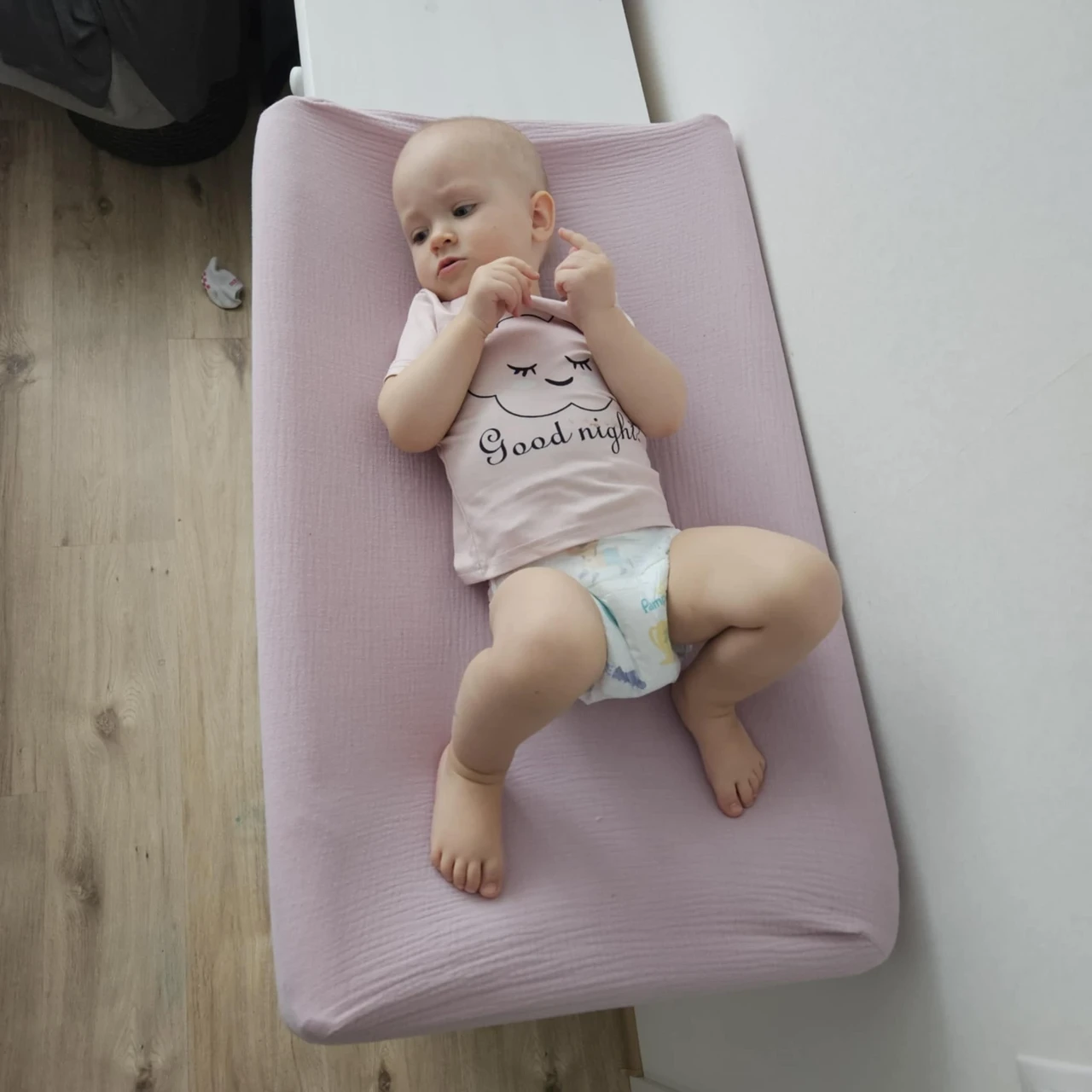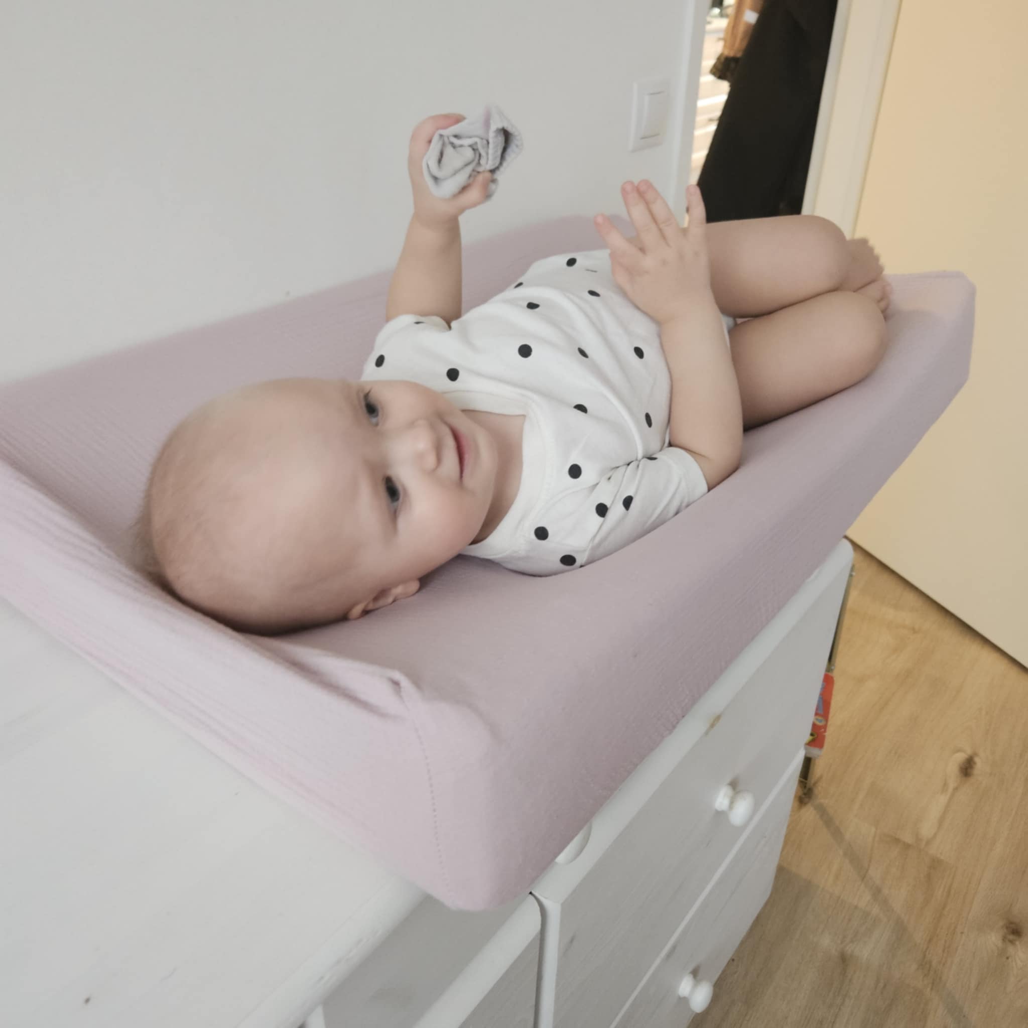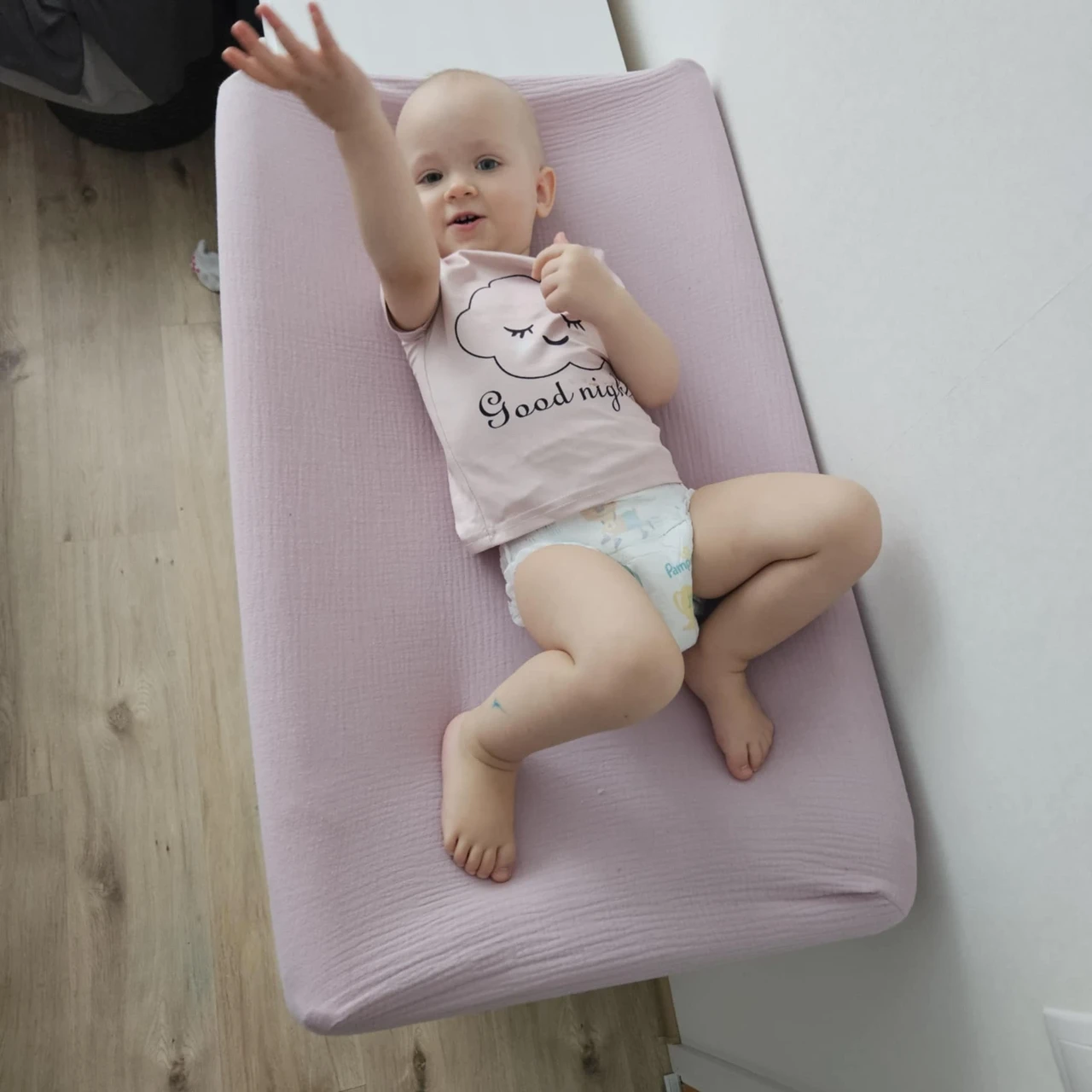 Materjalid on väga hingavad ning kuivavad kiiresti pärast pesu. Kummiga äär tagab, et kate hoiab mähkimisalusel kindlalt paigal ega libise. Pehme ja kaisutav pind on beebi naha vastu õrn.