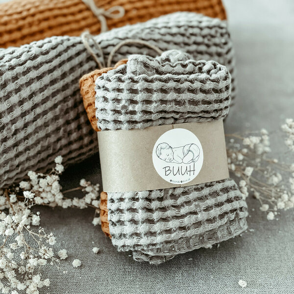 Lina ja puuvillasegune kangas on kootud vahvelmustriga ning rätile on õmmeldud aas juurde, et oleks mugav riputada.